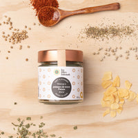Ingrédients : Piment d’Alep, Ail en flocon, Coriandre moulue, Sel, Poivre blanc, Thym, Citronnelle, Persil, Ciboulette.